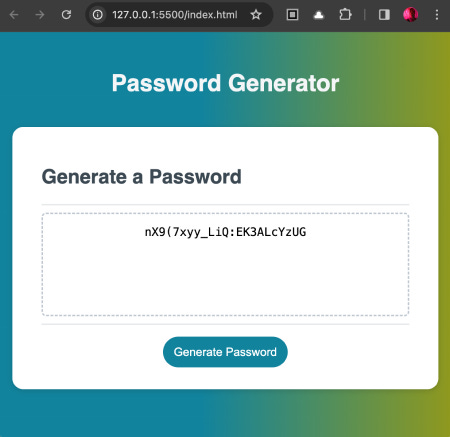 Oh and I made a password generator app with the help of my tutor. The specs they gave are not really useful and secure in real life so am not linking to the deployed site, but what the heck. This was way more fun than our last finance console project thingie.